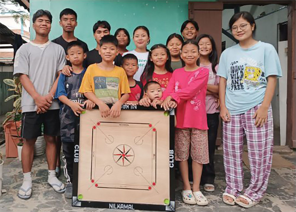 The children at Lainat Home were happy to receive a brand-new carrom board. It has become a favorite pastime, bringing laughter and fun as the children gather around to play during their leisure time.